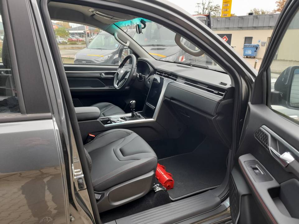 2 x USB vorn, 1 x USB im Fond, Airbags: Fahrer und Beifahrer, Allradsystem 4X4 zuschaltbar, Android Auto, Apple CarPlay, Anti-Blockier-System (ABS), Antriebsschlupfregelung (TCS), Armlehne im Fond mit Becherhalter, Armlehne vorne, Außenspiegel elektrisch verstell- und an, Berganfahr-Haltekontrolle (HHC), Bluetooth Freisprecheinrichtung, Bordcomputer, Bremsassistent hydraulisch (HBA), Bremskraftverteilung elektronisch (EBD), Bremsüberbrückungs-System (BOS), Einparkhilfe vorn/hinten mit Kamera 360°, Fahrdynamikregelung (VDC) + (ESC), Fensterheber elektrisch vorn / hinten, Geschwindigkeitsregelanlage, Getriebe: Schaltgetriebe 6 Gang, Heckscheibe beheizbar, ISOFIX, Infotainment System mit 10.4 HD touch LC, Keyless Go, Klimaanlage manuell, LED-Instrumententafel, Lackierung: Metallic, Lenkrad Höhenverstellbar, Lenkrad: Multifunktionslenkrad in Leder, Leselicht, Nebelscheinwerfer, Polster: Leder, Radio: Radio RDS/DAB, Reifendrucküberwachungssystem, aktiv (RD, Räder: Ersatzrad vollwertig, Stahl, Räder: Leichtmetallräder 18 Zoll, Schutzlackierung stoßfest auf der Ladefl, Sicherheitsgurte: Fahrer- und Beifahrers, Sitze: Beifahrersitz 4-fach Verstellung, Sitze: Fahrersitz 6-fach Verstellung man, Sitze: Rücksitzbank umklappbar, Sonnenblende für Fahrer und Beifahrer, Sonnenbrillenfach, Soundsystem mit 6 Lautsprechern, Steckdose: 12V-120 W Steckdose, Trittbretter seitlich, Wegfahrsperre, Xenon-Scheinwerfer mit LED-Tagfahrleucht, Zentralverriegelung, Überrollbügel