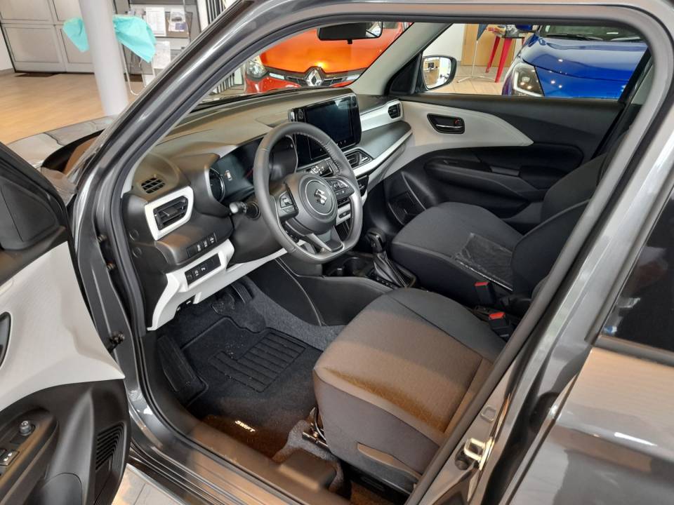 ABS, Adaptiver Tempomat (ACC) mit Geschwindig, Airbag Fahrer- und Bei.seite"Full-Size", Airbag: Seitenairbag vorne, Airbag: Vorhangairbag vorne und hinten, Alarmanlage, Ausparkassistent, Außensp. el. verstellbar und beheizbar, Außenspiegel in Dachfarbe, Berganfahrhilfe, Colorglas, Dachkantenspoiler, Drehzahlmesser, Dritte Bremsleuchte, Dual-Sensor gestützte akt.Bremsunterstüt, EBD, ESP, Einparkhilfe hinten, Fensterheber vorne und hinten elektrisch, Fernlichtassistent, Getriebe-Stufenlos Automatic (CVT), Guide me Light, Haltegriffe vorne rechts, Heckscheibenheizung, Heckscheibenwischer, Infrarot (IR) absorbierende Scheiben, Isofix Kindersitzbefestigung, Keyless Start, Klimaanlage mit Pollenfilter, Kopfstützen (2), Kopfstützen hinten (3), LED-Scheinwerfer (Projektor Design), LED-Tagfahrlicht, Laderaumabdeckung, Lederlenkrad längs- und höhenverstellbar, Leuchtweitenregulierung manuell, Lichtsensor, Mittelkonsole mit Ablagefach und Getränk, Multifunktionsdisplay, Müdigkeitserkennung, Ottopartikelfilter, Polster. Stoff, Radio: Audio-System inkl. Navigation, Radiozubehör: 6 Lautsprecher, Radiozubehör: USB Anschluss, Radiozubehör: USB-A und USB-C Anschluss, Reifendruck-Kontrollanzeige (aktiv), Räder: Leichtmetallfelgen 16", Rückfahrkamera, Rücksitzlehne separat umklappbar 60:40, Servolenkung, Sicherheitsgurte, Silberne Applikation am Lenkradkranz, Sitze: Fahrer höhenverstellbar, Sitze: Sitzheizung vorne, Sonnenblenden vorn mit Schminkspiegel, Spurhaltewarnsystem mit Lenkeingriff, Steckdose: 12V-Anschluß in Mittelkonsole, Suzuki Connect, Toter Winkel-Warnsystem, Traktionskontrolle, Ultraviolett (UV) absorbierende Scheiben, Unfalldatenspeicher, Verkehrszeichenerkennung m. Warnung, Wegfahrsperre elektronisch, Zentralverriegelung m. Funkfernbedienung, eCall (automatischer Notruf)