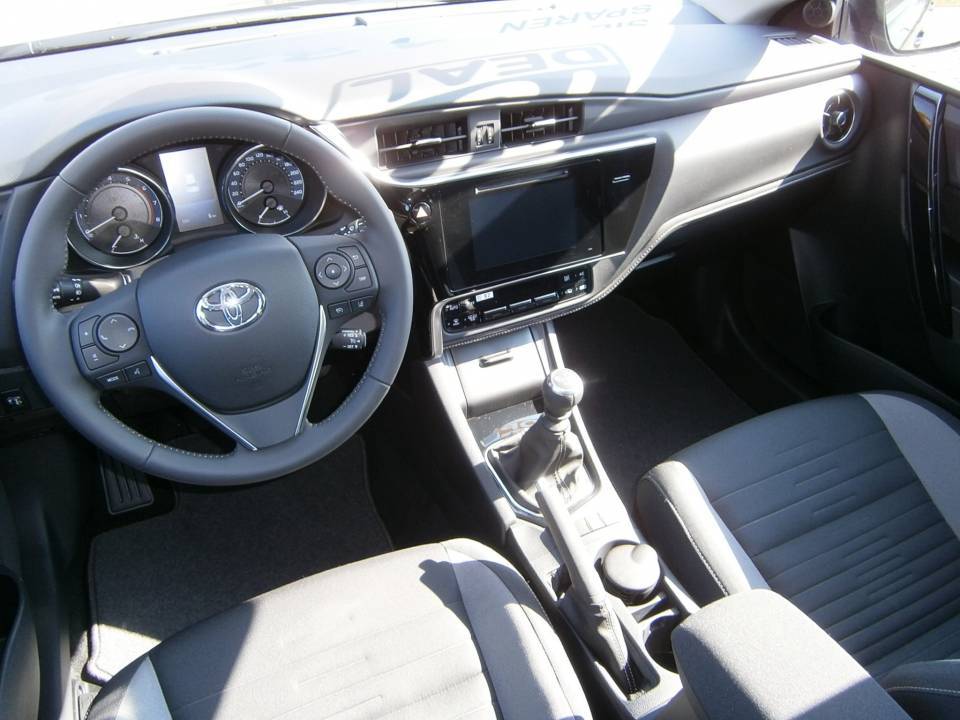 ABS mit EBD und BA, Ablagen, Airbag (Knieairbag), Airbag (Kopfairbags) vorn und hinten, Airbags: Frontairbags Fahrer / Beifahrer, Airbags: Seitenairbags Fahrer/Beifahrer, Außenspiegel elektrisch einstel. u. beh., Berganfahr-Assistent, Blinkleuchten in den Außenspiegeln, Bremsleuchte, dritte, Chromleisten an unt. Rahm. seit. Scheib., Drehzahlmesser, Fensterheber elektrisch vorn und hinten, Follow-me-home-Funktion, Gepäckraumabdeckung, Gepäckraumboden 2fach, höhenverstellbar, Geschwindigkeitsbegrenzer, Geschwindigkeitsregelanlage,elektronisch, Getriebe: 6-Gang-Schaltung, Heckleuchten mit LED-Lichtbändern, Heckscheibe beheizbar, Heckscheibenwischer m. Intervall, Innenraum-Beleuchtung, Kindersicherung in den hinteren Türen, Klimaautomatik, Kopfstützen (2), Kopfstützen (3) hinten höhenverstellbar, Lederlenkrad und Lederschaltknauf, Mittelarmlehne hinten m. Getränkehalter, Mittelarmlehne vorn mit Staufach, verst., Multi-Info-Display, Farb Bildschirm, Multimedia Audiosystem Toyota Touch 2, Nebelscheinwerfer im Stoßfänger integr., Polster: Stoff, Privacy Glas, Reifendruck-Warnsystem (TPWS), Reifenreparaturset, Räder: LM-Räder 7J x 17' 225/45R17, Rücksitzlehne geteilt 60/40 umklappbar, Servolenkung elektrisch, Shark-Fin-Antenne, Sicherheitsgurte:, Sitz: Fahrer höhenverstellbar, Sitz: Fahrersitz mit Lendenwirbelstütze, Sitze: Beifahrersitz höhenverstellbar, Sitze: Sitzheizung Fahrer und Beifahrer, Sonnenblenden mit Make-up-Spiegeln, Stabilitätsprogramm + Traktionskontrolle, Start-Stop-Automatik, Steckdose, 12V, in der Mittelkonsole, Stoßfänger u. Türgriffe in Wagenfarbe, Tagfahrlicht - LED, Wegfahrsperre, elektronisch, Wärmeschutzverglasung, getönt, Zentralverriegelung m. Funkfernbedienung, Zusatzsteckdose, 12 V, im Kofferraum, Zusatzsteckdose, 12V, im Fahrzeugfond