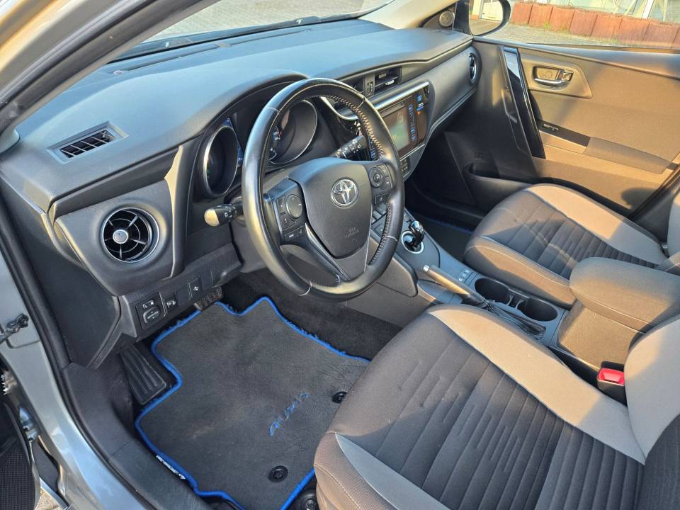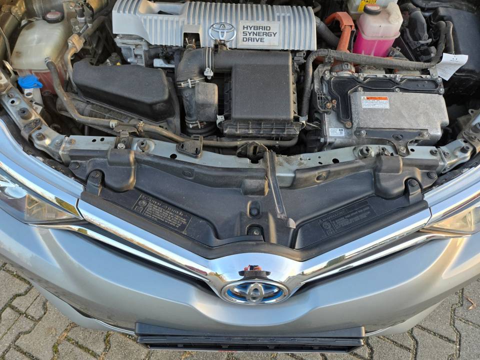 ABS mit EBD und BA, Ablagen, Airbag (Knieairbag), Airbag (Kopfairbags) vorn und hinten, Airbags: Frontairbags Fahrer / Beifahrer, Airbags: Seitenairbags Fahrer/Beifahrer, Außenspiegel elektrisch einstel. u. beh., Berganfahr-Assistent, Blinkleuchten in den Außenspiegeln, Bremsleuchte, dritte, Chromleisten an unt. Rahm. seit. Scheib., Dachreling silber, Drehzahlmesser, Fahrmodus-Selektor für EV-Modus, Fensterheber elektrisch vorn und hinten, Follow-me-home-Funktion, Gepäckraumabdeckung, Gepäckraumboden 2fach, höhenverstellbar, Gepäckraumtrennnetz, herausnehmbar, Geschwindigkeitsregelanlage,elektronisch, Getriebe: Stufenloses Automatikgetriebe, Heckleuchten mit LED-Lichtbändern, Heckscheibe beheizbar, Heckscheibenwischer m. Intervall, Innenraum-Beleuchtung, Kindersicherung in den hinteren Türen, Klimaautomatik, Kopfstützen (2), Kopfstützen (3) hinten höhenverstellbar, Lederlenkrad und Lederschaltknauf, Mittelarmlehne hinten m. Getränkehalter, Mittelarmlehne vorn mit Staufach, verst., Multi-Info-Display, Farb Bildschirm, Multimedia Audiosystem Toyota Touch 2, Nebelscheinwerfer im Stoßfänger integr., Polster: Stoff, Privacy Glas, Reifendruck-Warnsystem (TPWS), Reifenreparaturset, Räder: LM-Räder 7J x 17' 225/45R17, Rücksitzlehne geteilt 60/40 umklappbar, Servolenkung elektrisch, Shark-Fin-Antenne, Sicherheitsgurte:, Sitz: Fahrer höhenverstellbar, Sitz: Fahrersitz mit Lendenwirbelstütze, Sitze: Beifahrersitz höhenverstellbar, Sitze: Sitzheizung Fahrer und Beifahrer, Sonnenblenden mit Make-up-Spiegeln, Stabilitätsprogramm + Traktionskontrolle, Start-/Stop-Knopf: schlüsselloses Starte, Steckdose, 12V, in der Mittelkonsole, Stoßfänger u. Türgriffe in Wagenfarbe, Tagfahrlicht - LED, Wegfahrsperre, elektronisch, Wärmeschutzverglasung, getönt, Zentralverriegelung m. Funkfernbedienung, Zusatzsteckdose, 12 V, im Kofferraum, Zusatzsteckdose, 12V, im Fahrzeugfond